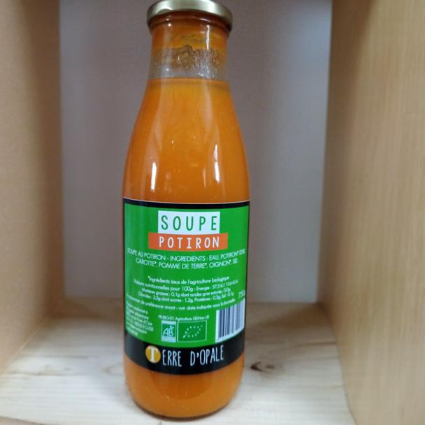 -) Ingrédients : Eau, Potiron* (35%), Carotte*, Pomme de terre*, Oignon*, Sel